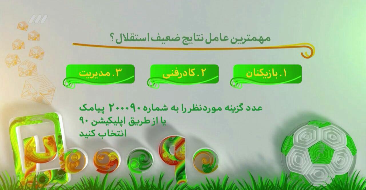 مخاطبان برنامه نود ميتوانند از بين «بازيکنان»، «کادر فني» و «مديريت» يک گزينه را بهعنوان مهمترين عامل نتايج ضعيف تيم استقلال تهران انتخاب کنند.